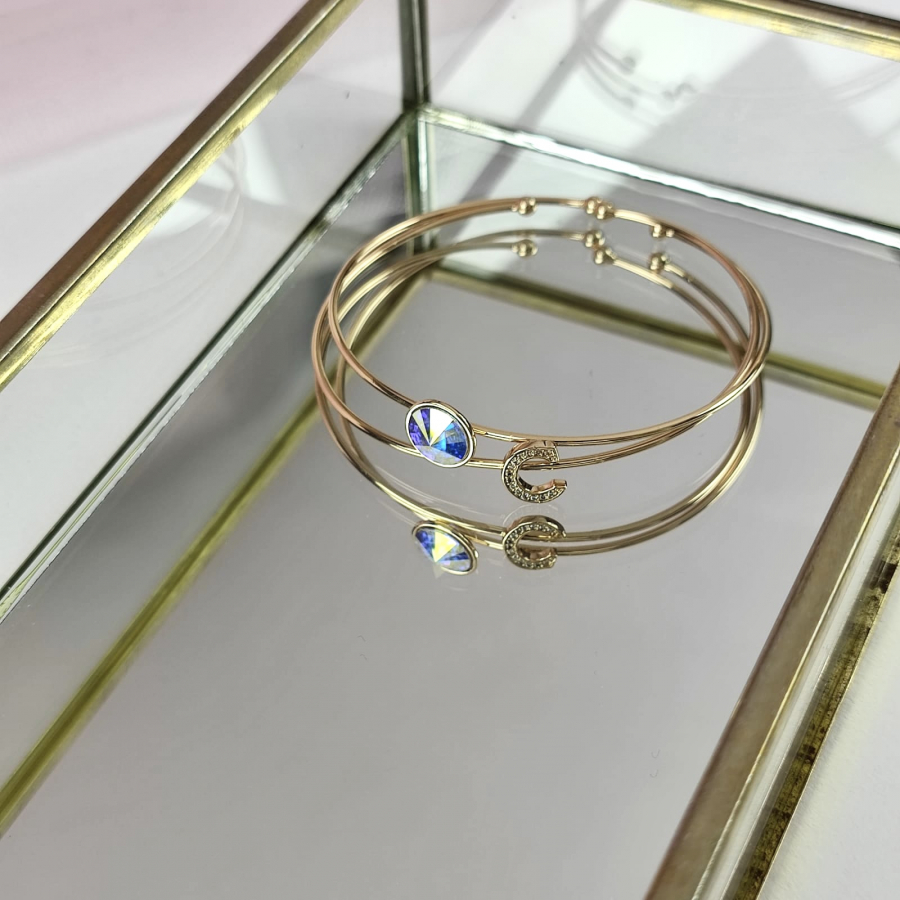 bransoletka sztywna podwójna kryształ multi AB pozłacana
