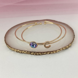 Bransoletka sztywna, podwójna z kryształem w kolorze fioletowo-niebieskim.