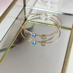 bransoletka sztywna kryształ podwójna fioletowo-niebieska pozłacana