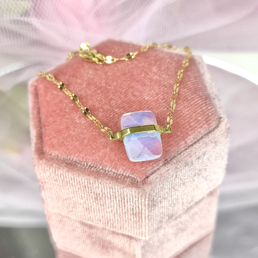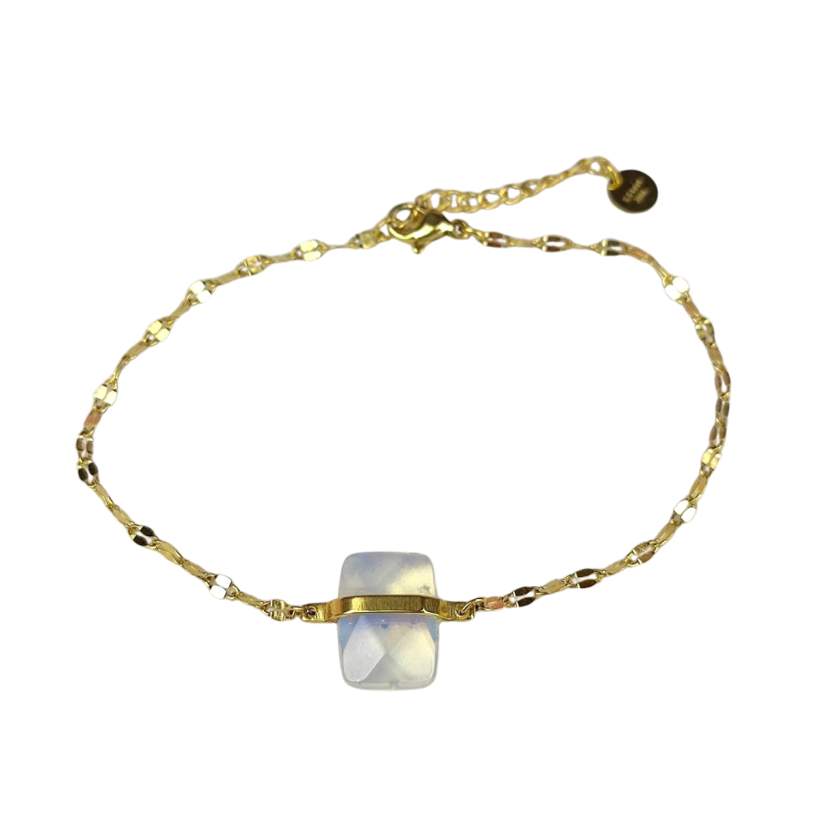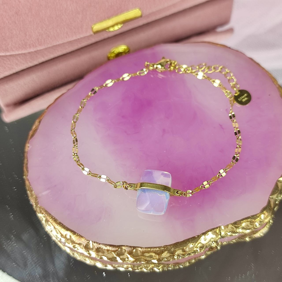 Biżuteria wykonana jest z najwyższej jakości stali chirurgicznej 316, która nie czernieje, nie uczula i jest w 100% hipoalergiczna. Bransoletka na spłaszczanym łańcuszku, który pięknie mieni się w świetle, z kamieniem naturalnym - opalem. Długość 18,5 cm + 3 cm przedłużka.
