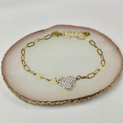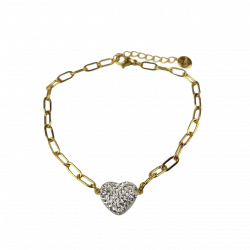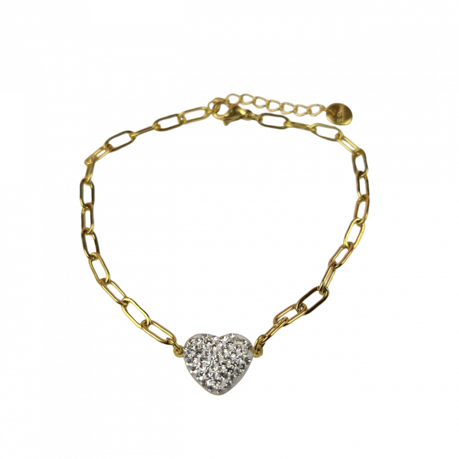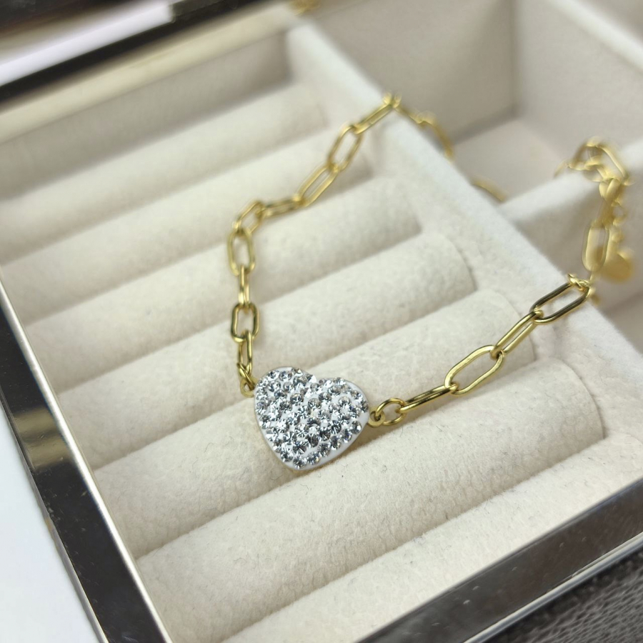 Bransoletka wykonana ze stali chirurgicznej, z ozdobnym sercem z cyrkoniami. Długość 18,5 cm + 4 cm przedłużka.