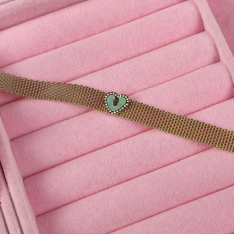 bransoletka siatka serce kłódka masa perłowa stal chirurgiczna