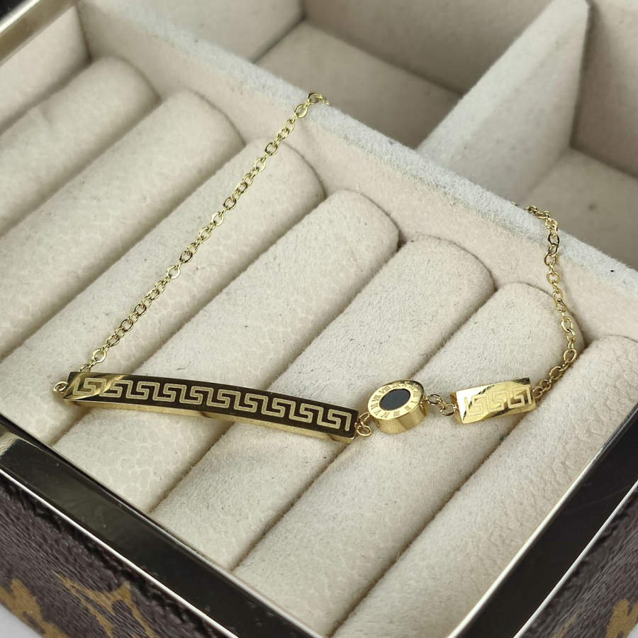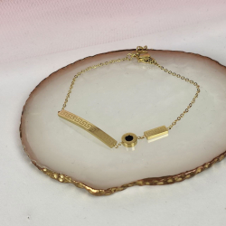 Biżuteria w postaci bransoletki wykonana z najwyższej jakości stali chirurgicznej 316L. Z motywem rzymskich cyferek i drogi greckiej. Składa się z łańcuszka oraz kółeczka wypełnionego czarną masą z grawerowanymi rzymskimi cyferkami naokoło oraz dwóch blaszek z grawerowaną drogą grecką. Długość 16,5 cm + 3,5 cm przedłużka.