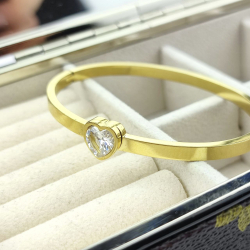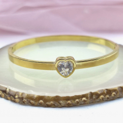 Biżuteria wykonana jest z najwyższej jakości stali chirurgicznej 316, która nie czernieje, nie uczula i jest w 100% hipoalergiczna. Bransoletka sztywna typu jajo, z centralnie położonym kryształem w kształcie serca. Średnica w szerszym miejscu - 5,6 cm.