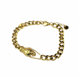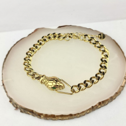 Biżuteria wykonana jest z najwyższej jakości stali chirurgicznej 316, która nie czernieje, nie uczula i jest w 100% hipoalergiczna. Bransoletka pancerka, z głową węża. Długość 17 cm + 3,5 cm przedłużka.