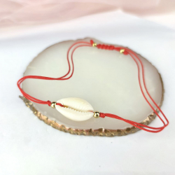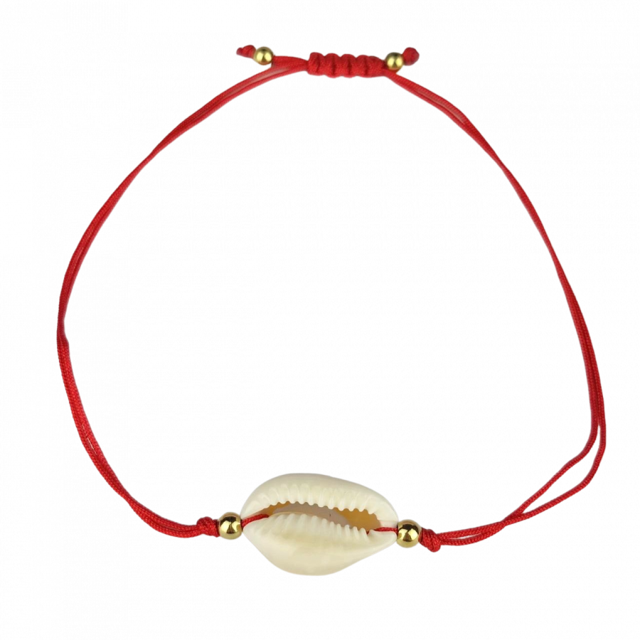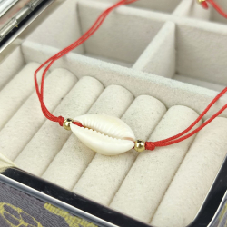 Bransoletka sznurek czerwony muszelka stal chirurgiczna