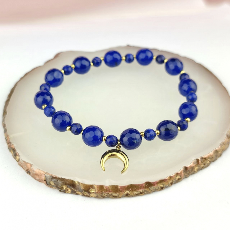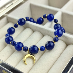 Biżuteria wykonana jest z najwyższej jakości stali chirurgicznej 316, która nie czernieje, nie uczula i jest w 100% hipoalergiczna. Bransoletka na gumce, dzięki czemu idealnie dopasuje się do obwodu nadgarstka. Z kamieniem naturalnym - granatem oraz zawieszką w kształcie rogu obfitości. Cenionej marki Moonriver.