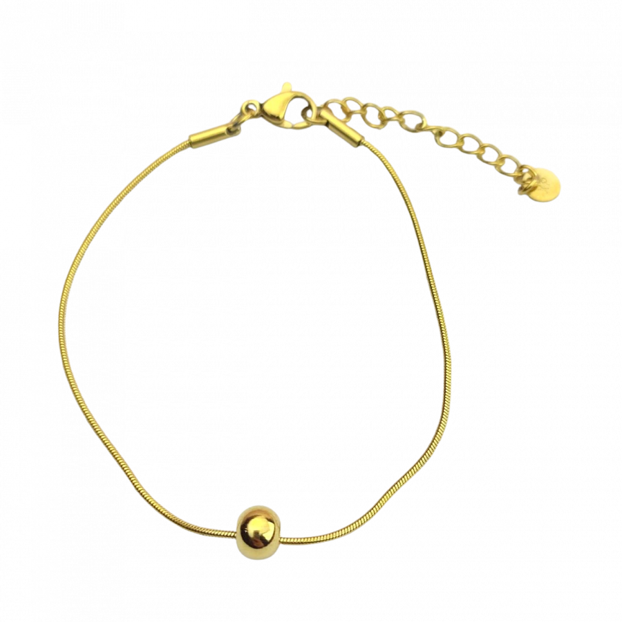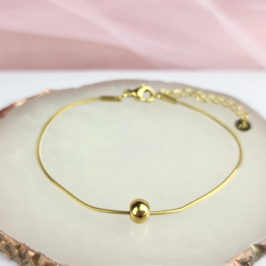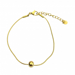Biżuteria wykonana jest z najwyższej jakości stali chirurgicznej 316, która nie czernieje, nie uczula i jest w 100% hipoalergiczna. Bransoletka delikatna, ze złotą kulką. Długość 16,5 cm + 4 cm przedłużka.