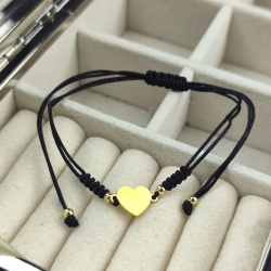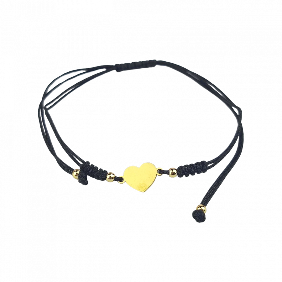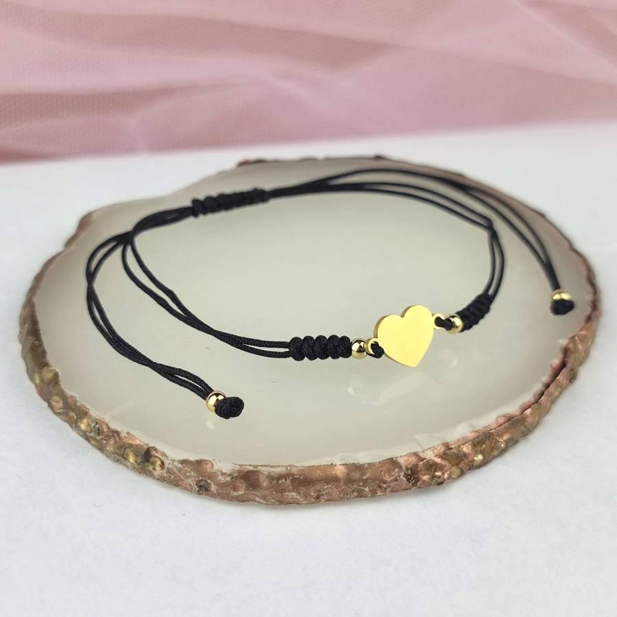 Biżuteria wykonana jest z najwyższej jakości stali chirurgicznej 316, która nie czernieje, nie uczula i jest w 100% hipoalergiczna. Bransoletka zaciskana, na czarnym sznurku, z sercem. Idealnie dopasowuje się do obwodu nadgarstka.
