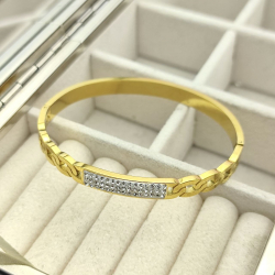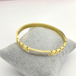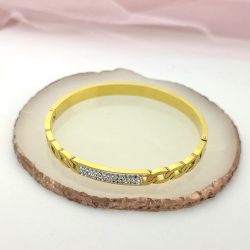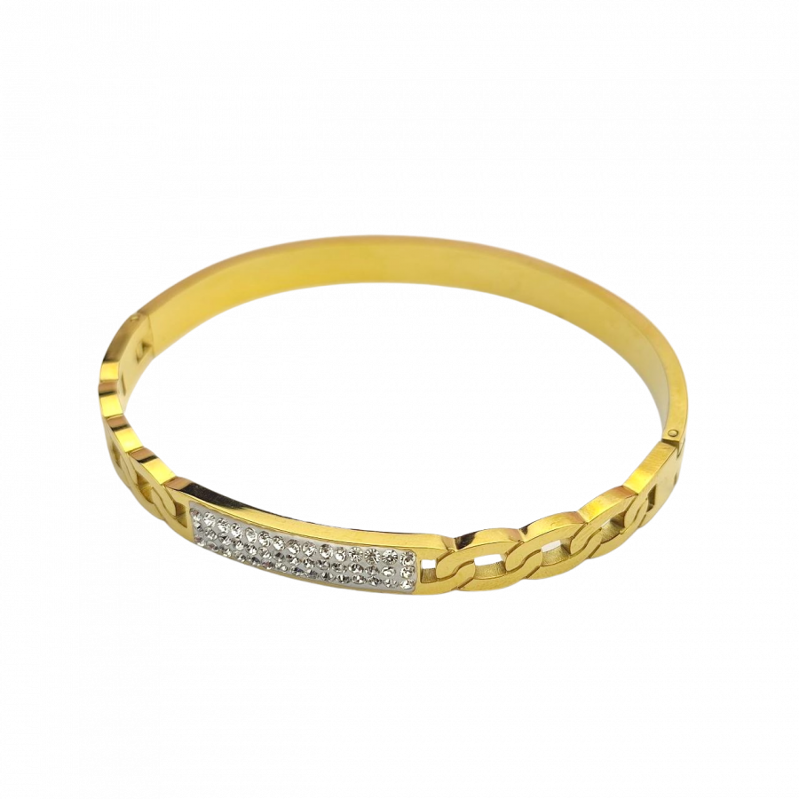 Biżuteria wykonana jest z najwyższej jakości stali chirurgicznej 316, która nie czernieje, nie uczula i jest w 100% hipoalergiczna. Bransoletka sztywna, typu jajo, z pancerką i cyrkoniami. Na obwód nadgarstka do 19 cm.