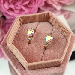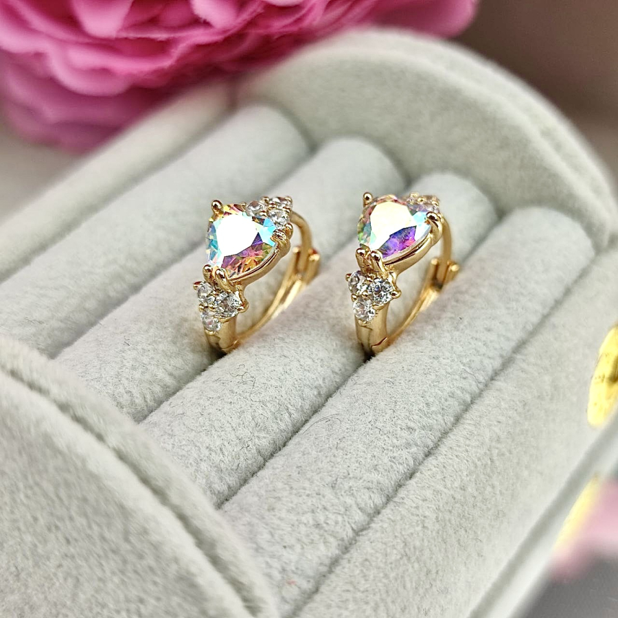 Biżuteria pozłacana, trzykrotnie pokryta warstwą 18-karatowego złota. Kolczyki kółka francuskie zapięcie, z kryształkiem w kształcie serca, ozdobione srebrnymi kryształkami. Średnica 12mm.