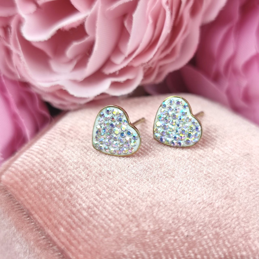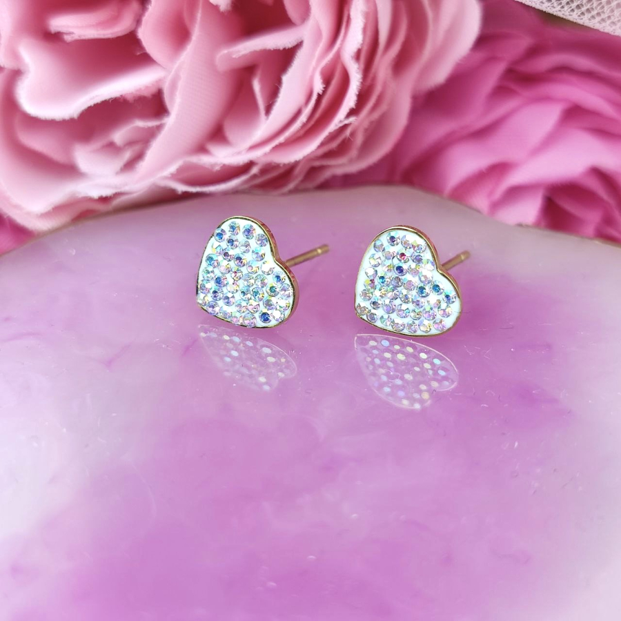 Biżuteria wykonana jest z najwyższej jakości stali chirurgicznej 316, która nie czernieje, nie uczula i jest w 100% hipoalergiczna. Kolczyki typu sztyfty/wkręty, w kształcie serca, wypełnione cyrkoniami w kolorze multi. Wielkość 9 mm x 10 mm.