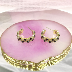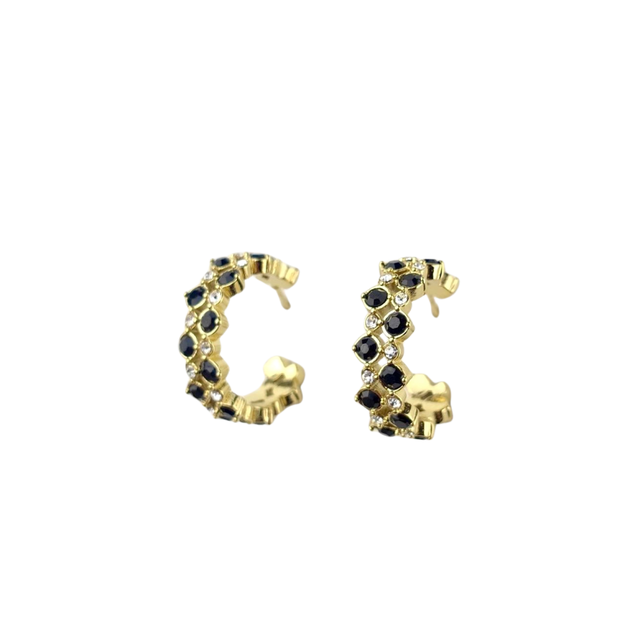 Kolczyki sztyft kółka kryształki czarne srebrne stal chirurgiczna