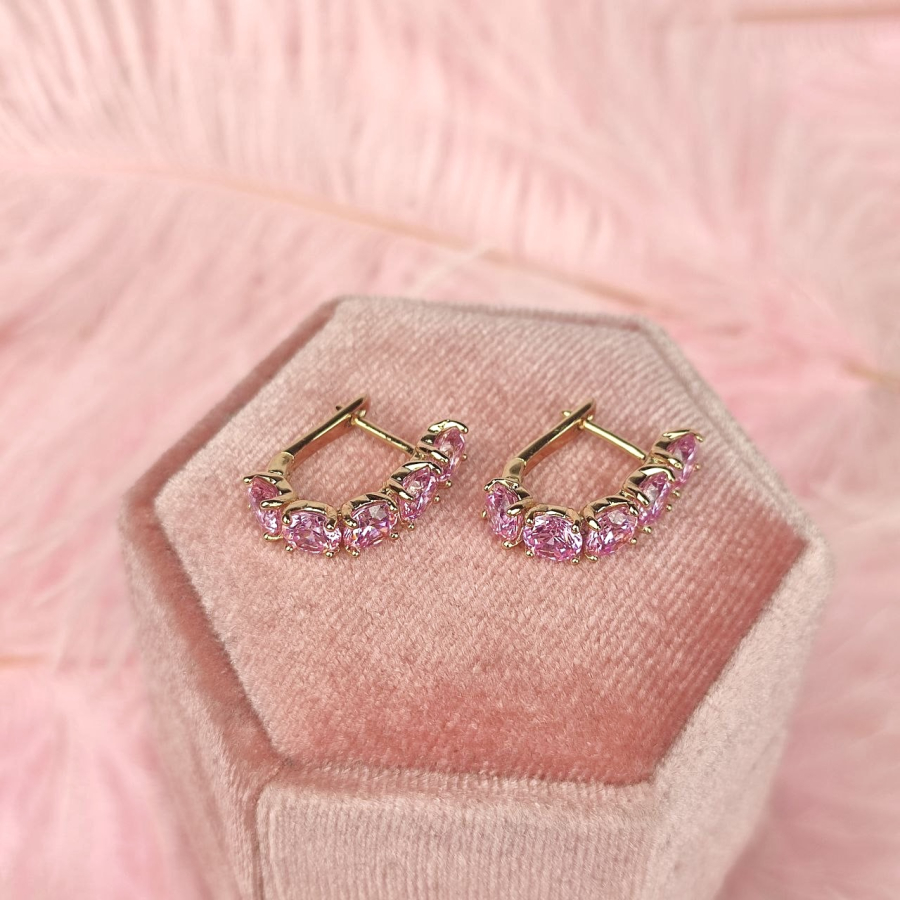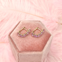 Kolczyki angielskie różowe kryształki pozłacane
