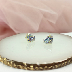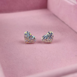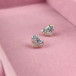 Kolczyki typu sztyfty/wkręty wykonane z najwyższej jakości stali chirurgicznej 316L. W kształcie serca, które ozdobione jest bogato cyrkoniami w kolorze multi, czyli AB. Wyjątkowa biżuteria, która przyciągnie wzrok innych. Wysokość 9 mm, szerokość 12 mm.
