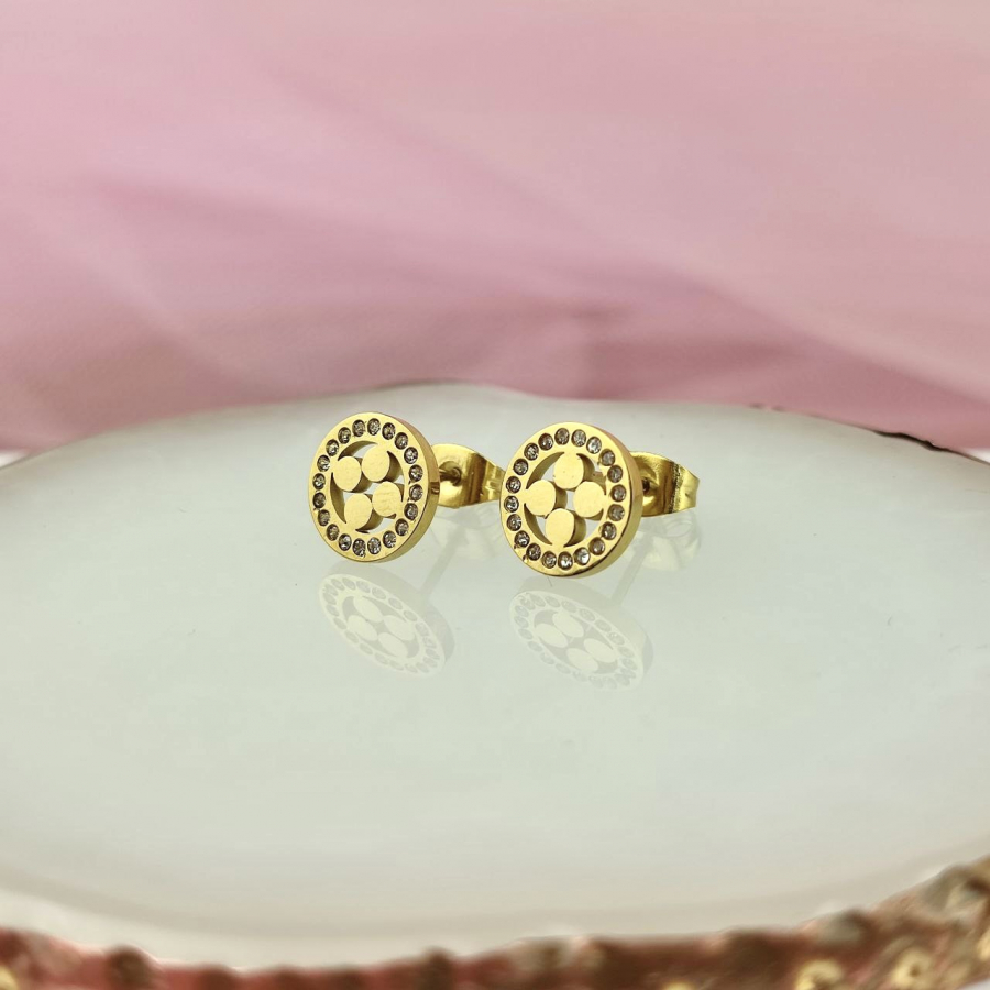 Biżuteria wykonana jest z najwyższej jakości stali chirurgicznej 316, która nie czernieje, nie uczula i jest w 100% hipoalergiczna. Kolczyki typu sztyfty/wkręty z lilijką, otoczone cyrkoniami. Średnica 1cm.