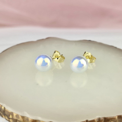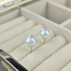 Kolczyki sztyft perełka opalizująca niebieskie stal chirurgiczna