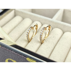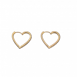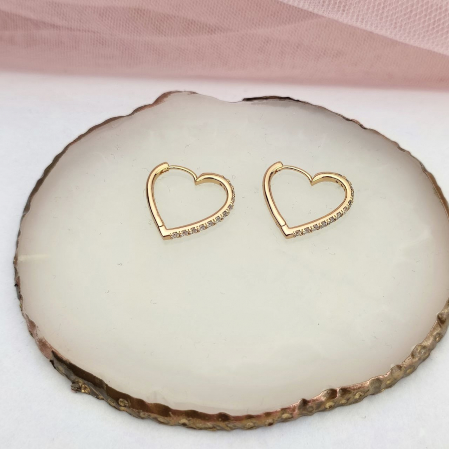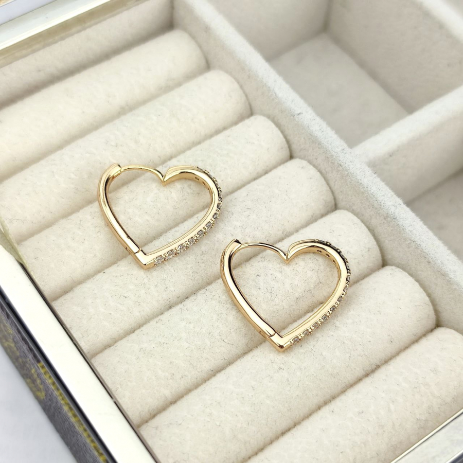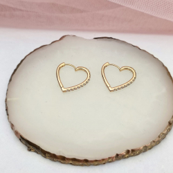 Biżuteria pozłacana, trzykrotnie pokryta warstwą 18-karatowego złota. Kolczyki na fancuskim zapięciu, w kształcie serca, wysadzane cyrkoniami z przodu. Wielkość 2 cm.
