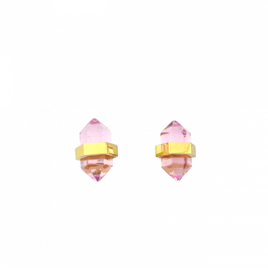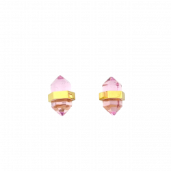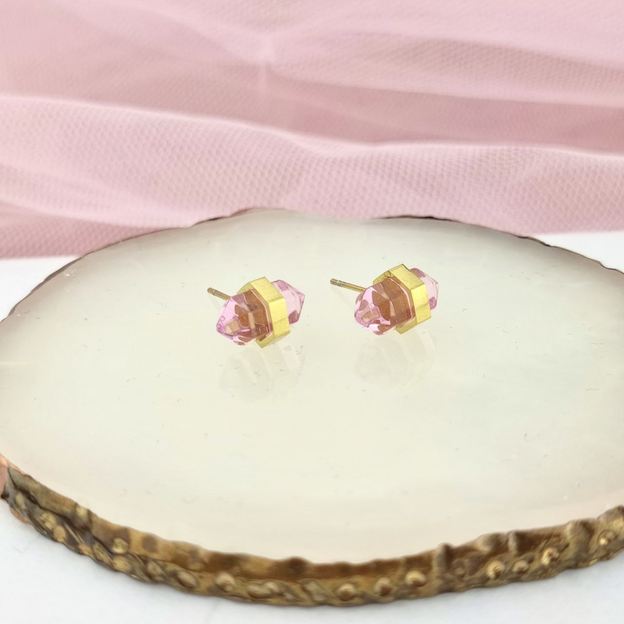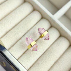 Biżuteria wykonana jest z najwyższej jakości stali chirurgicznej 316, która nie czernieje, nie uczula i jest w 100% hipoalergiczna. Kolczyki typu sztyfty/wkręty z minerałem - kryształem górskim barwionym na różowo. Wielkość 13 mm.
