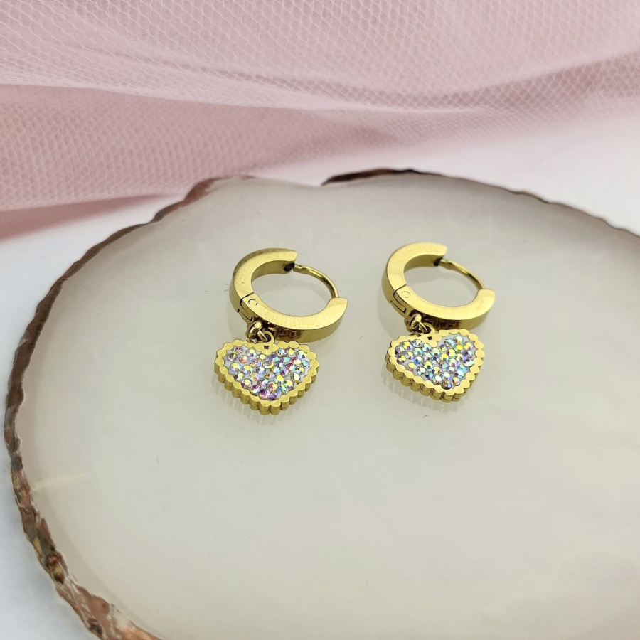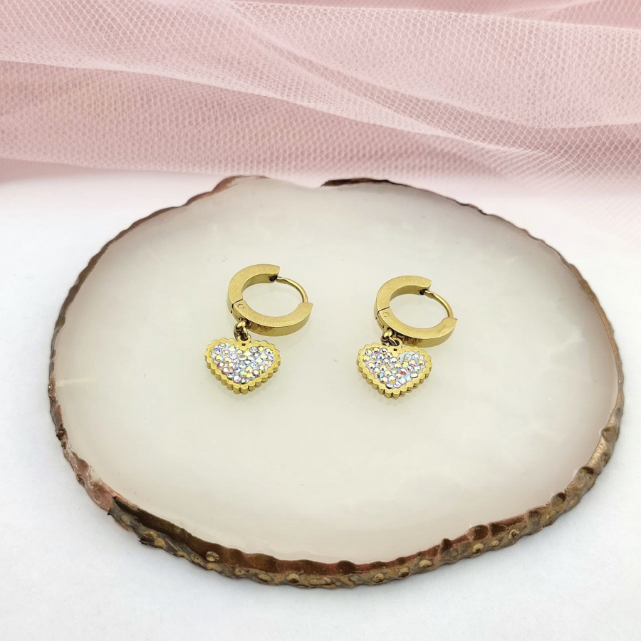 Te piękne kolczyki ze stali chirurgicznej 316L to idealny wybór dla każdej kobiety, która szuka subtelnego i eleganckiego dodatku. Kolczyki mają francuskie zapięcie, które jest niezwykle wygodne i bezpieczne. Serce wysadzane jest w multi cyrkonie, które dodają im blasku i uroku. Te kolczyki będą doskonałym wyborem na każdą okazję. Wielkość 2,5 cm.