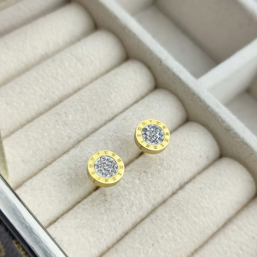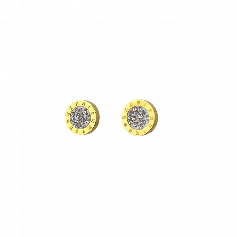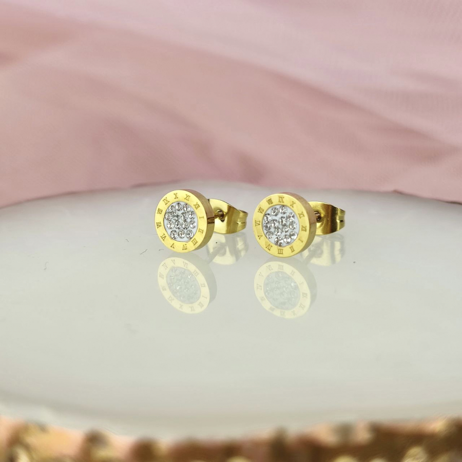 Biżuteria wykonana jest z najwyższej jakości stali chirurgicznej 316, która nie czernieje, nie uczula i jest w 100% hipoalergiczna. Kolczyki typu sztyfty/wkręty okrągłe, z grawerowanymi rzymskimi cyframi i cyrkoniami w środku. Średnica 8 mm.