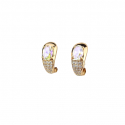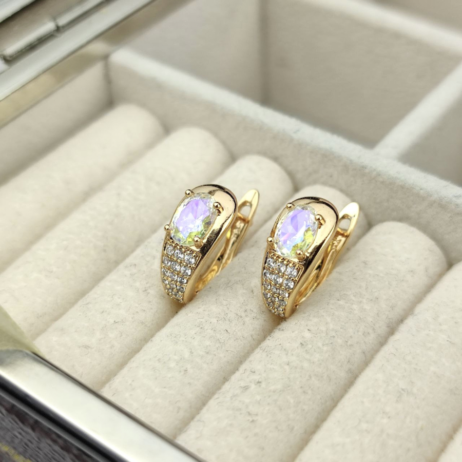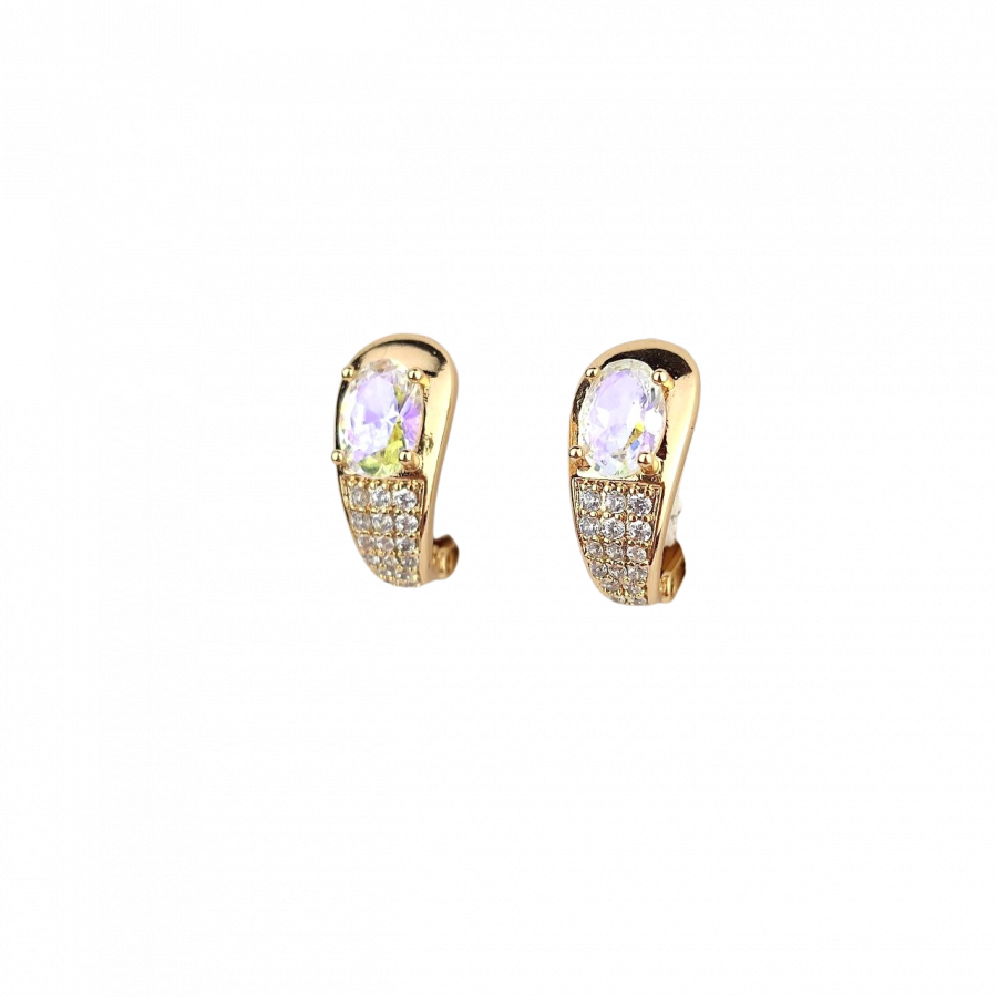 Biżuteria pozłacana, trzykrotnie pokryta warstwą 18-karatowego złota. Kolczyki na angielskim zapięciu, z multi kryształem, bogato wysadzane w cyrkonie. Wielkość 1,5 cm.