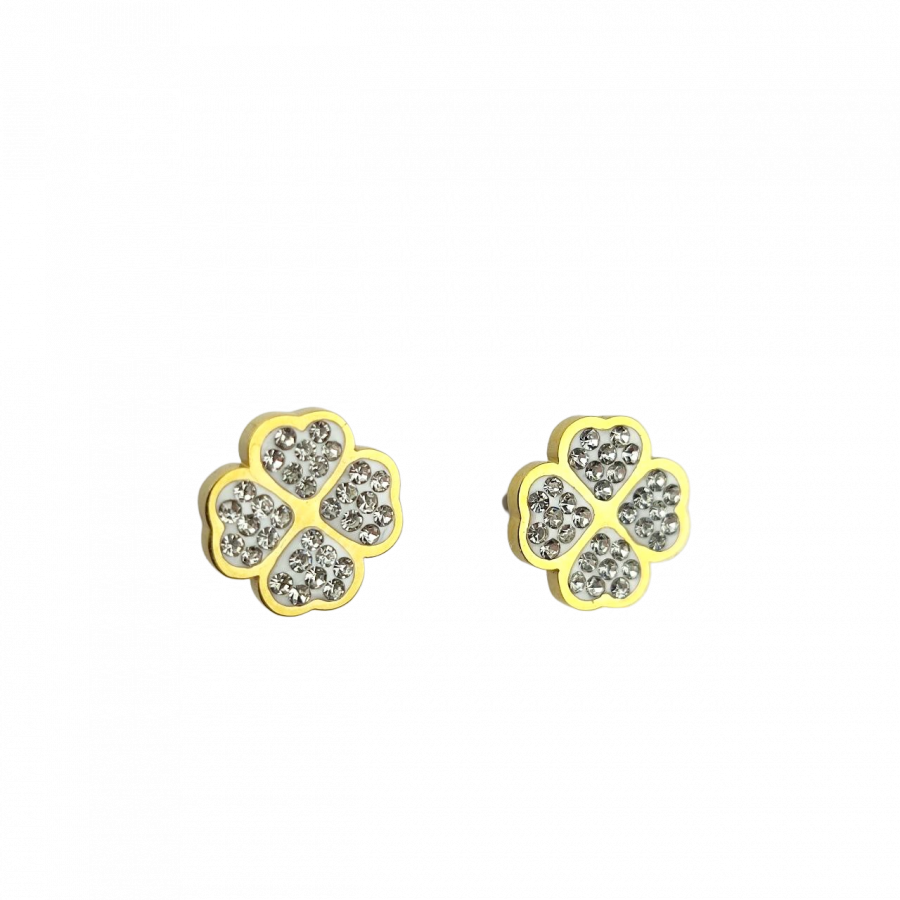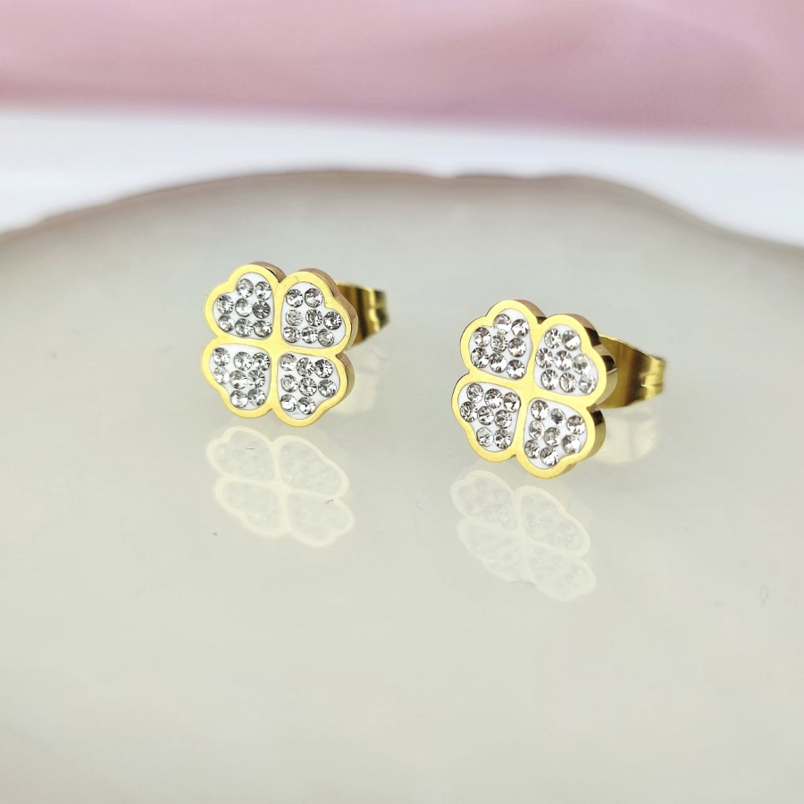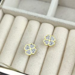 Kolczyki sztyfty koniczyna czterolistna cyrkonie stal chirurgiczna