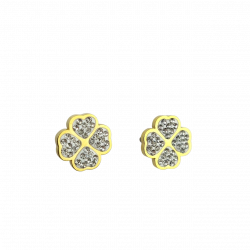 Biżuteria wykonana jest z najwyższej jakości stali chirurgicznej 316, która nie czernieje, nie uczula i jest w 100% hipoalergiczna. Kolczyki typu sztyfty/wkręty w kształcie czterolistnej koniczyny. Bogato ozdobione cyrkoniami. Wielkość 1 cm.