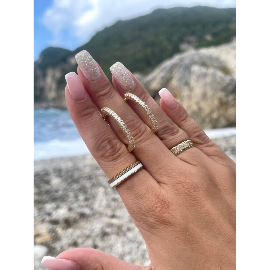 Biżuteria wykonana jest z najwyższej jakości stali chirurgicznej 316, która nie czernieje, nie uczula i jest w 100% hipoalergiczna. Kolczyki na angielskim zapieciu, kółka wysadzane naokoło kryształkami. Cenionej marki Moonriver. Kolor złota próby 585. Średnica 3 cm.