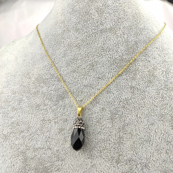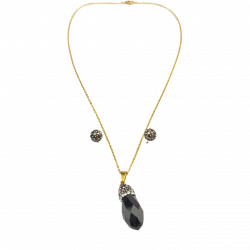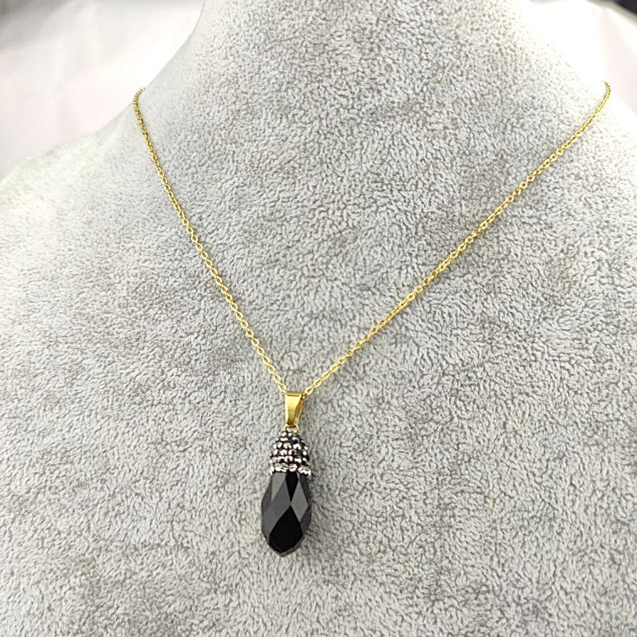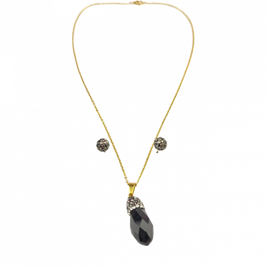 Biżuteria wykonana jest z najwyższej jakości stali chirurgicznej 316, która nie czernieje, nie uczula i jest w 100% hipoalergiczna. Komplet biżuterii składający się z naszyjnika oraz kolczyków, czarny kryształ oraz grafitowe cyrkonie. Długość naszyjnika 44 cm.
