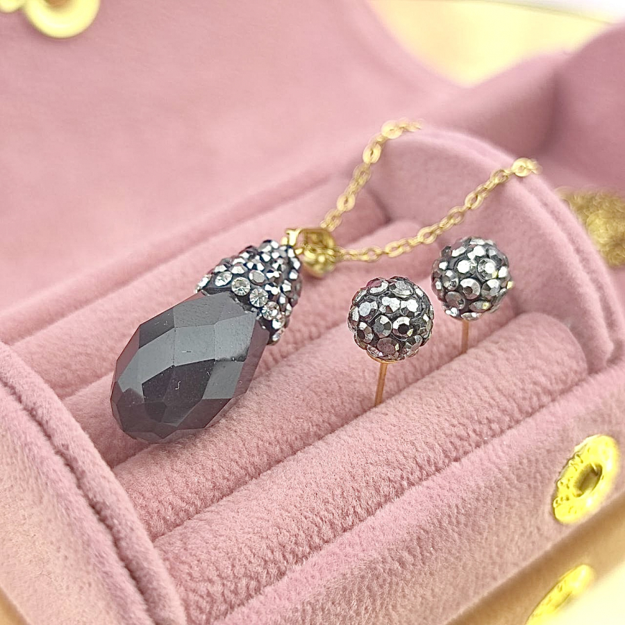Komplet biżuterii shamballa czarny kryształ stal chirurgiczna