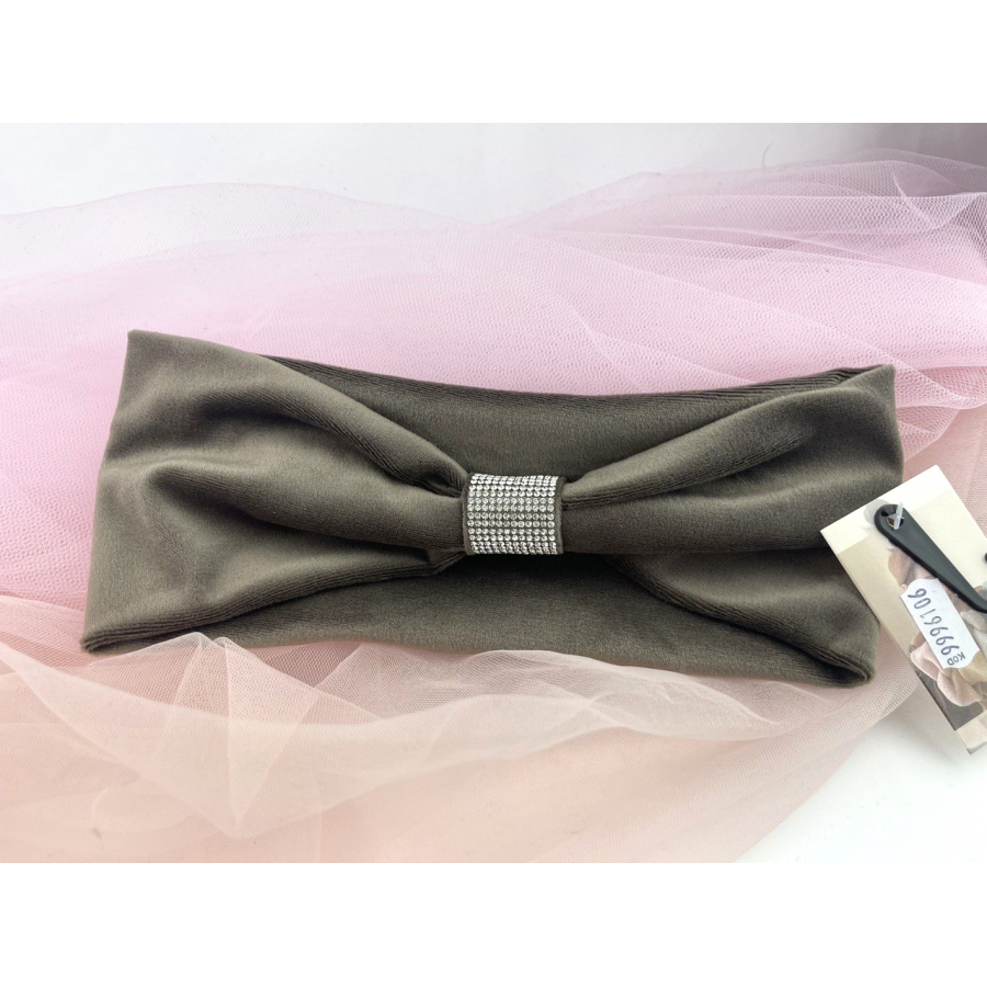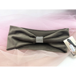 Opaska welurowa na głowę zamiast czapki. Ciepła, podwójny materiał, z cyrkoniami. Szerokość 10 cm. Obwód głowy 46 cm - 100 cm (bardzo elastyczna). Kolor brąz.