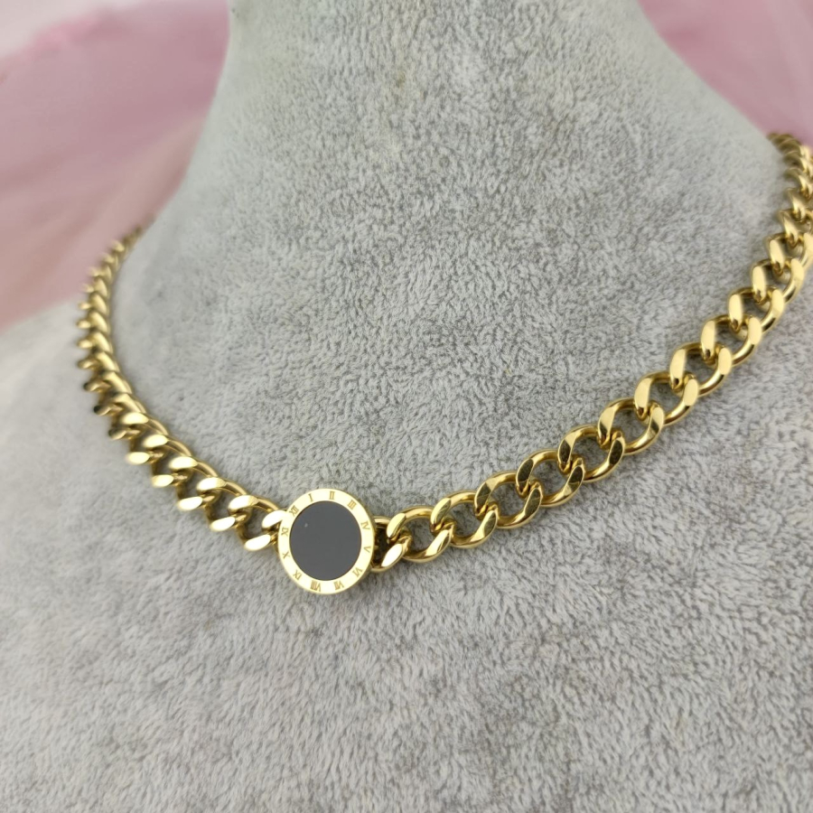 Naszyjnik pancerka rzymskie cyferki gruby stal chirurgiczna