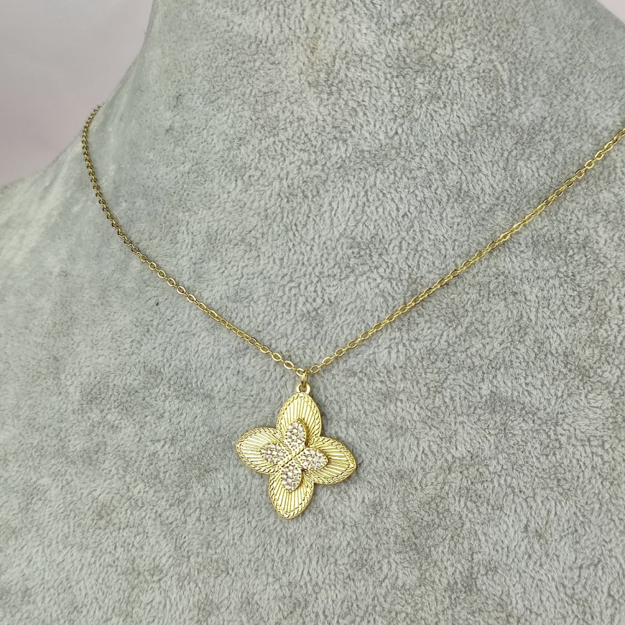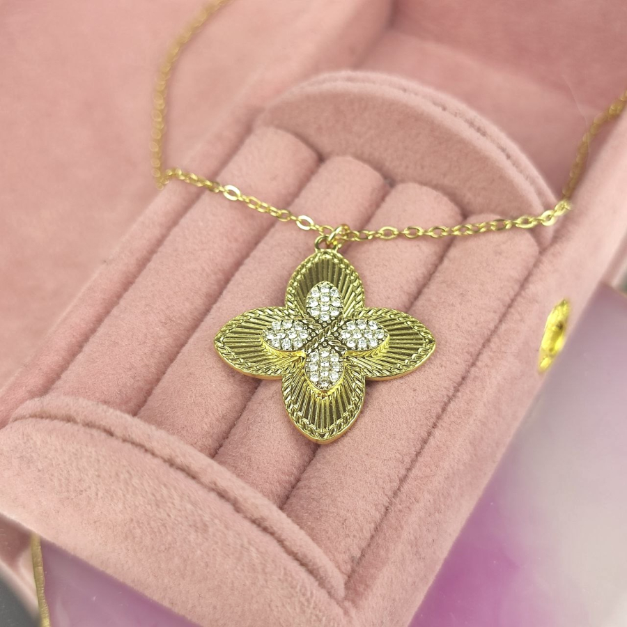 Naszyjnik celebrytka koniczynka cyrkonie stal chirurgiczna