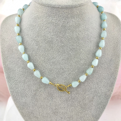 Naszyjnik minerał akwamaryn zapięcie patyk stal chirurgiczna