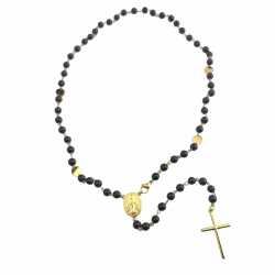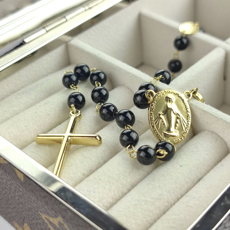 Naszyjnik różaniec czarny kamień minerał krzyż stal chirurgiczna