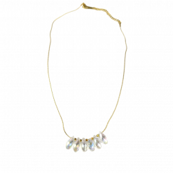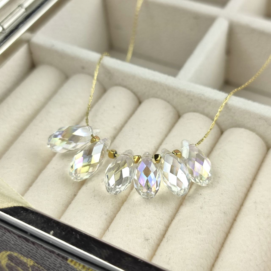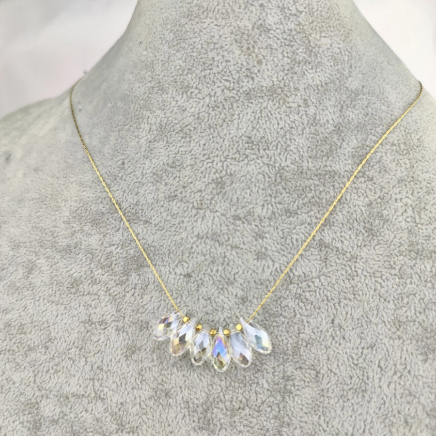 Biżuteria wykonana jest z najwyższej jakości stali chirurgicznej 316, która nie czernieje, nie uczula i jest w 100% hipoalergiczna. Naszyjnik z łezkami kryształ przezroczysty, opalizujący w multi. Cenionej marki Moonriver. Długość 39 cm + 6 cm przedłużka.