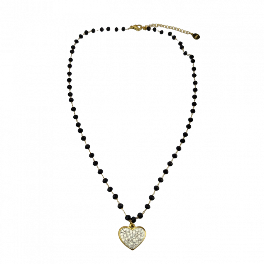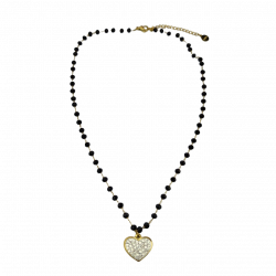 Biżuteria wykonana jest z najwyższej jakości stali chirurgicznej 316, która nie czernieje, nie uczula i jest w 100% hipoalergiczna. Naszyjnik cały z czarnymi, szlifowanymi paciorkami, z zawieszką w kształcie serca, wypełnioną cyrkoniami. Długość 40 cm + 5 cm przedłużka, wielkość serca 15 mm x 15 mm.