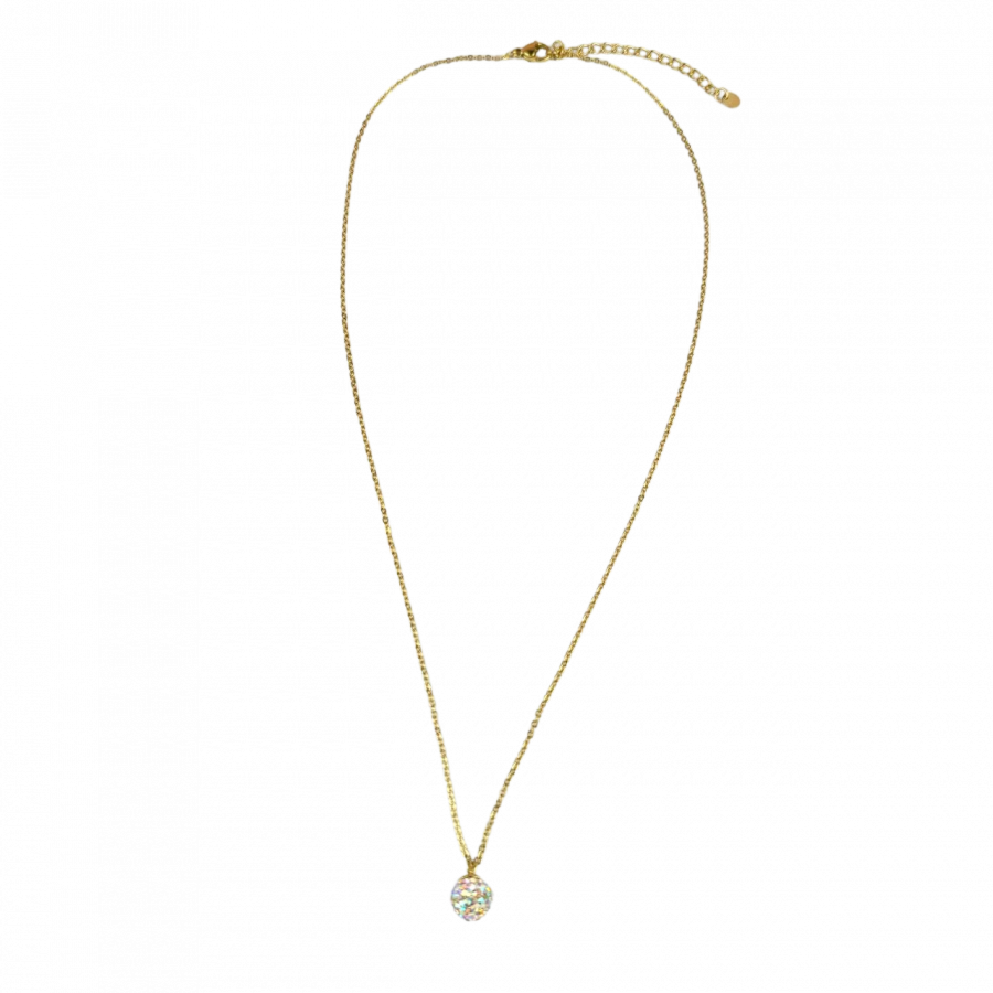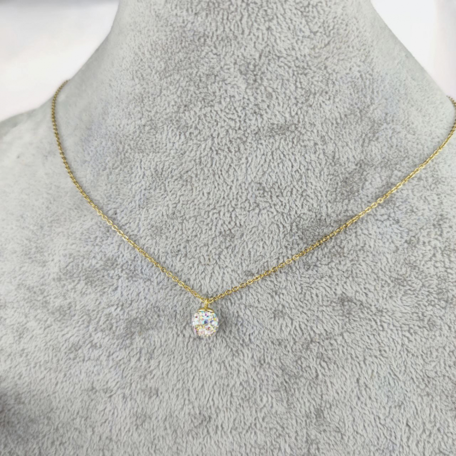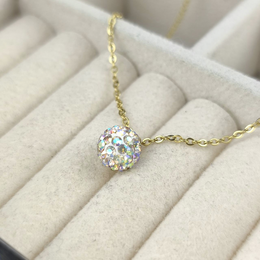 Biżuteria wykonana jest z najwyższej jakości stali chirurgicznej 316, która nie czernieje, nie uczula i jest w 100% hipoalergiczna. Naszyjnik delikatny, typu celebrytka, z zawieszoną kulką wysadzaną cyrkoniami w kolorze multi. Długość 45 cm + 5 cm przedłużka.