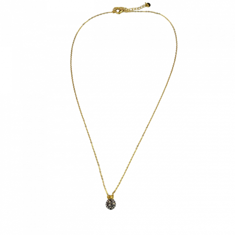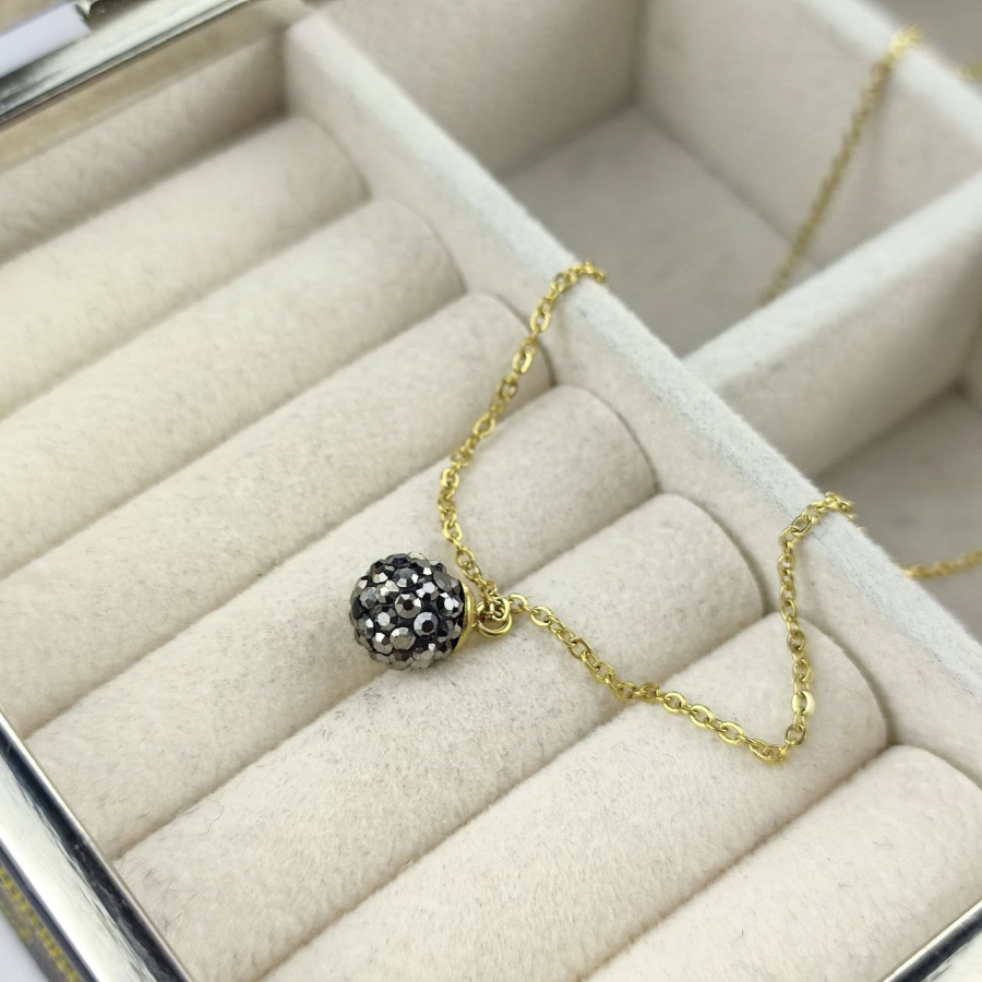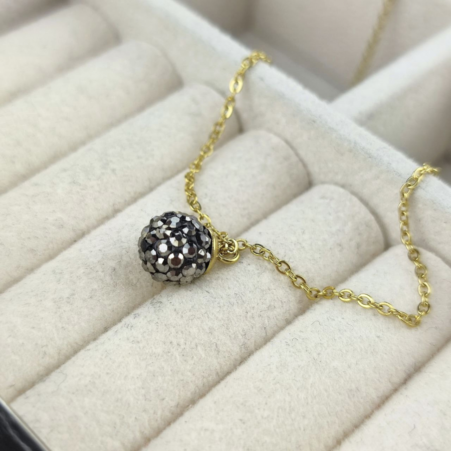 Biżuteria wykonana jest z najwyższej jakości stali chirurgicznej 316, która nie czernieje, nie uczula i jest w 100% hipoalergiczna. Naszyjnik delikatny, typu celebrytka, z zawieszoną kulką wysadzaną cyrkoniami w kolorze grafitowymi. Długość 45 cm + 5 cm przedłużka.