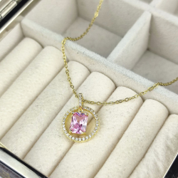 Naszyjnik celebrytka różowy kryształ cyrkonie stal chirurgiczna