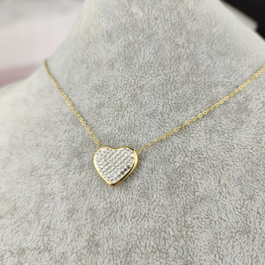 Biżuteria wykonana jest z najwyższej jakości stali chirurgicznej 316, która nie czernieje, nie uczula i jest w 100% hipoalergiczna. Naszyjnik typu celebrytka, z sercem, bogato wysadzanym cyrkoniami. Długość 45 cm + 5 cm przedłużka.