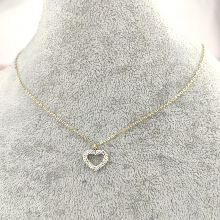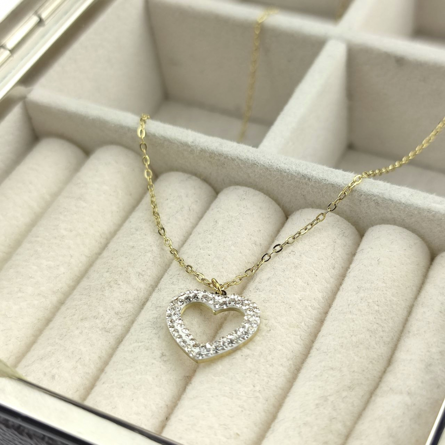 Biżuteria wykonana jest z najwyższej jakości stali chirurgicznej 316, która nie czernieje, nie uczula i jest w 100% hipoalergiczna. Naszyjnik typu celebrytka z zawieszką w kształcie serca, wysadzanego cyrkoniami. Długość 44 cm + 6 cm przedłużka.