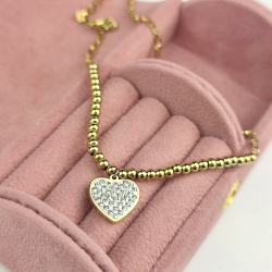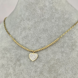 Naszyjnik serce cyrkonie kuleczki stal chirurgiczna