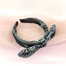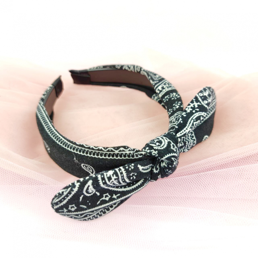 Kultowa i ponadczasowa opaska do włosów bandanka w kolorze czarnym. Zarówno na dziecięcą główkę jak i dla dorosłej kobiety. Kokardka jest z drucikiem, co daje możliwość ułożenia kokardki w dowolnej pozycji w zależności od upodobań.
