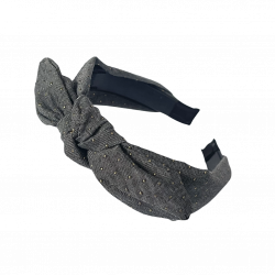 Opaska do włosów w kolorze czarnym z  kokardką ozdobiona  dżetami złotymi.