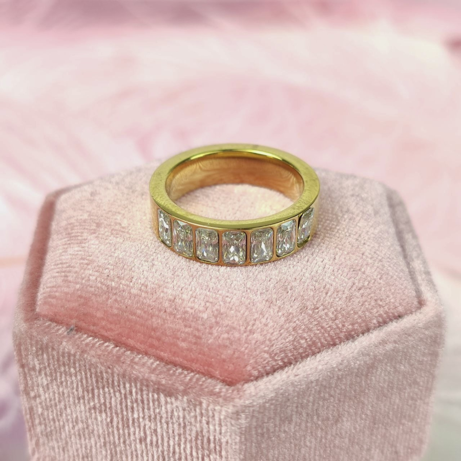 Biżuteria wykonana jest z najwyższej jakości stali chirurgicznej 316, która nie czernieje, nie uczula i jest w 100% hipoalergiczna. Pierścionek gładki, typu obrączka, wysadzany z przodu kryształkami. Cenionej marki Blueberry.