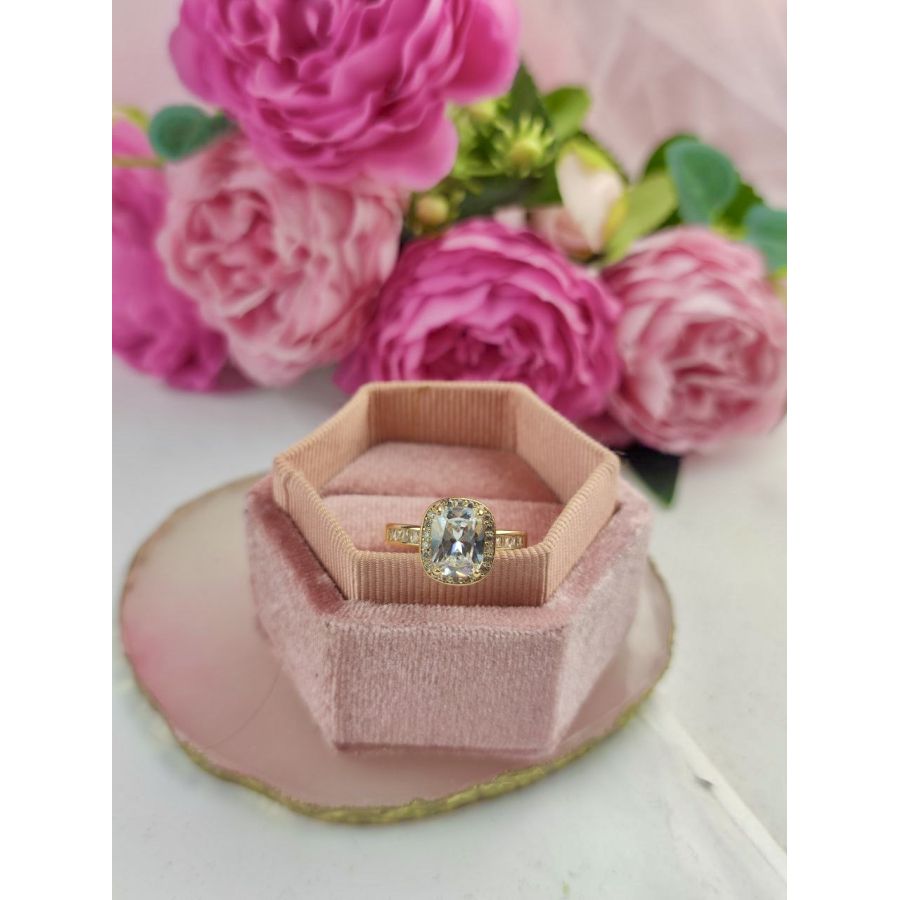 Pierścionek markiza srebrny kryształ prostokąt pozłacany