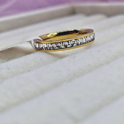 Pierścionek bagieta cienka srebrne kryształki stal chirurgiczna 316L