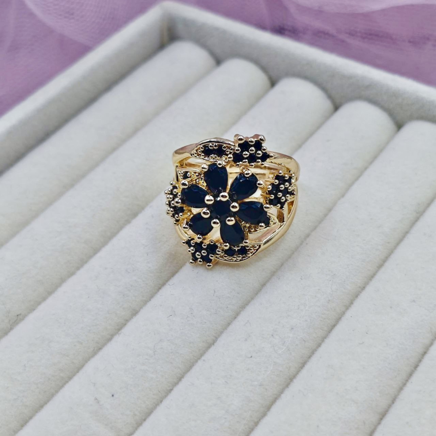 Biżuteria pozłacana, trzykrotnie pokryta warstwą 18-karatowego złota. Pierścionek z pięknym kryształowym kwiatem, ozdobiony bogato kryształkami. Pierścionek regulowany - pasuje od rozmiaru 7 do rozmiaru 10 (średnica 17-20 mm).